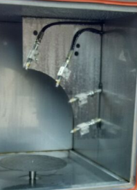 1.溫度獨立控制,PLC程序控制總電源時間、流量、樣架轉速以及4個噴嘴間歇噴水時間和周期數,